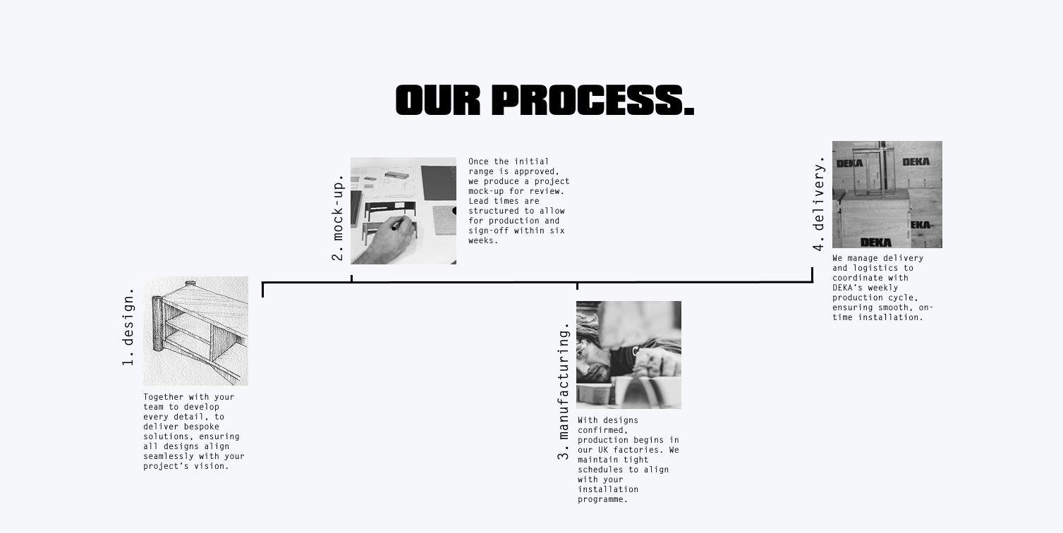 DEKA specialises in tailored furniture solutions for the Build to Rent, Hospitality, and Purpose Built Student Accommodation sectors. Working closely with your design team, we bring your vision to life. With seamless logistics, state-of-the-art UK manufacturing facilities, and a proven track record in high-volume delivery, DEKA is a partner you can depend on.
